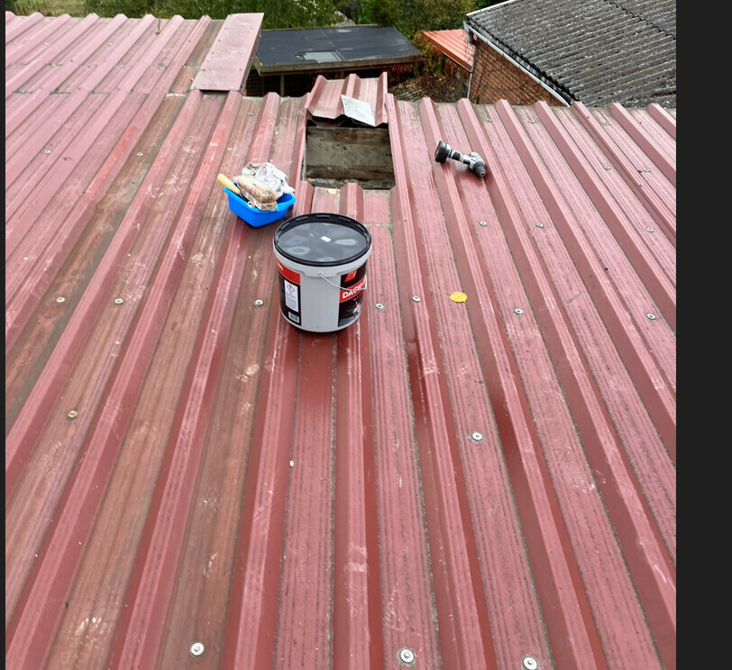 wir haben bei uns ein Problem mit dem Dach. Es handelt sich um ein Blechdas welches noch vom Vorbesitzer ist. Seit dem letzten Regen, sind die Hauswände feucht. Das Haus wird noch nicht bewohnt aber es wird derzeit renoviert (Pause). Die letzten Monate war es aber eigentlich immer relativ trocken.