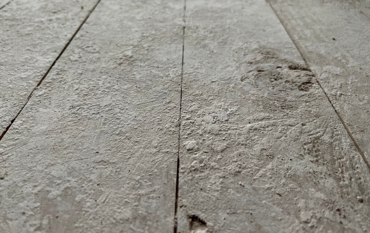 Während des Verputzens war die Luke überhaupt nicht abgedeckt und beim Estrich war da eine Rigipsplatte von oben aufgelegt. Ab Herbst bis Montage der Treppe kurz vor Einzug war das Loch im Prinzip immer geöffnet. Man sieht mittlerweile schön, wie der ganze Rauhspund arbeitet und schrumpft. Auffällige Fugen sind mir vorher nie aufgefallen. Der ganze Rest-Putz war auch schön homogen, was sich nun ändert.