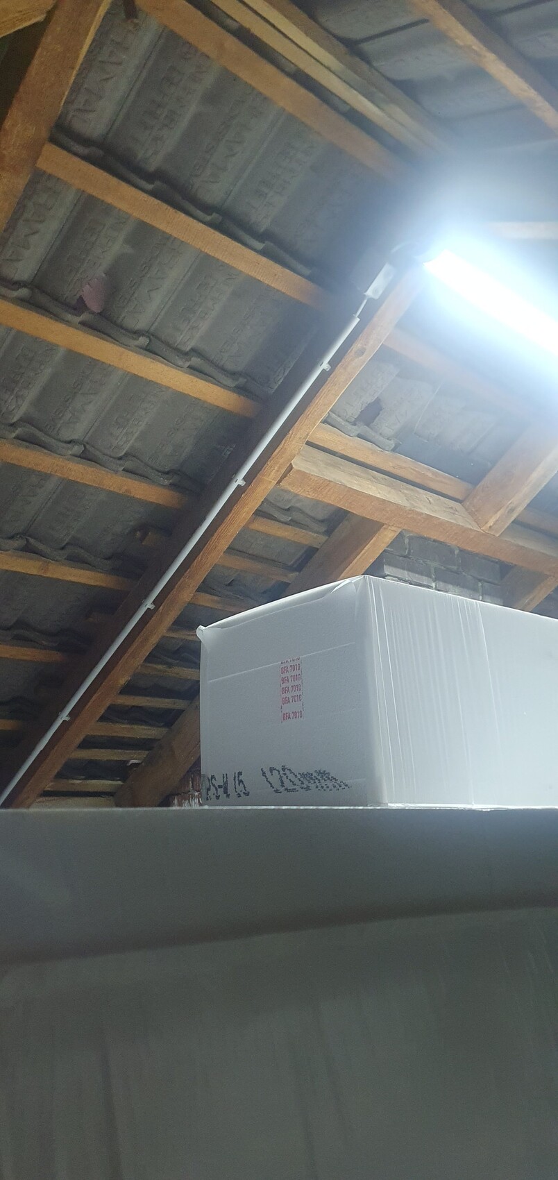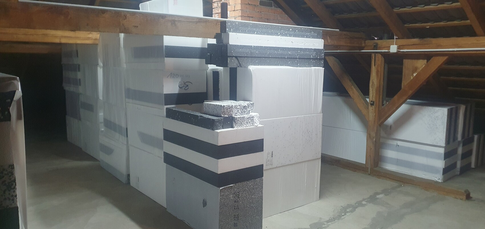Es befinden sich derzeit ca. 10cm Dämmwolle und Estrich auf dem Dachboden. (Begehbar)