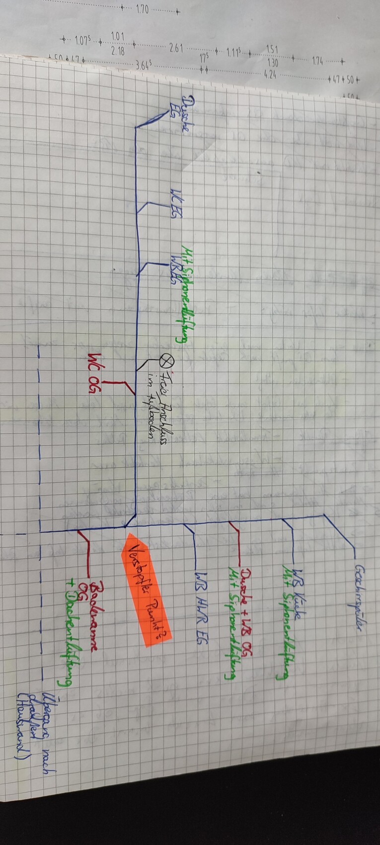 Anbei nochmal ein Bild von den Leitungen.... das leider mein Verständnis übersteigt - ich kann das weder als Grundriss noch als Schnitt gemeint einordnen :-(Tx-25 schrieb: