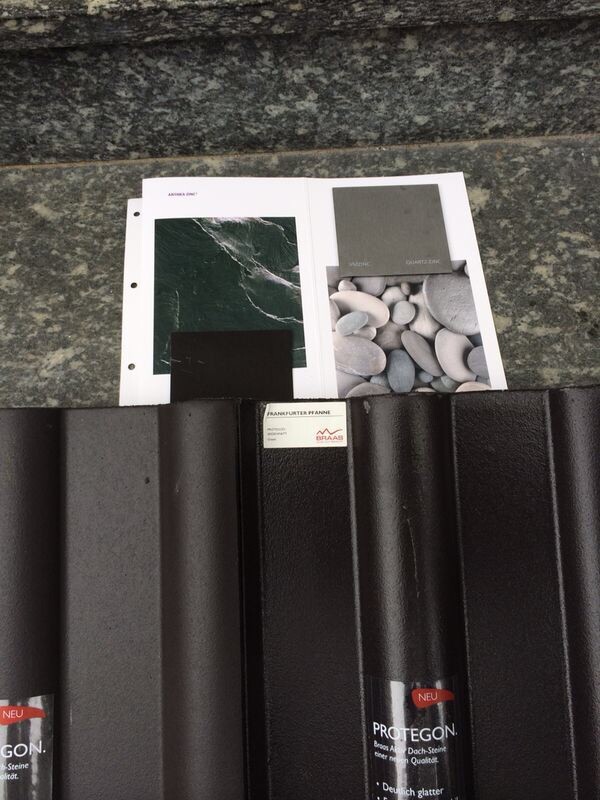 Ich weiß jetzt nicht genau wie die Auslegung ist. Aber es gibt auch die Farbe "seidenmatt". Die glänzen zwar auch ein bisschen, aber eben nicht so wie diese hochglänzenden. Wir haben "tiefschwarz seidenmatt". Frage mal auf dem Bauamt nach oder lass dies den Architekten machen. Vielleicht wird diese Zwischenlösung ja akzeptiert.