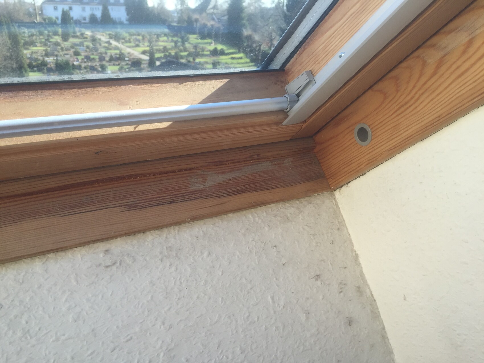 Wir haben im Dachgeschoss eine Spielhalle von etwa 150 m2. Hier gibt es 2 Dachfenster aus Holz (Velux?), die aus Sicherheitsgründen abgeschlossen sind. Demnach ist anzunehmen, dass dort selten bis nie gelüftet wurde.