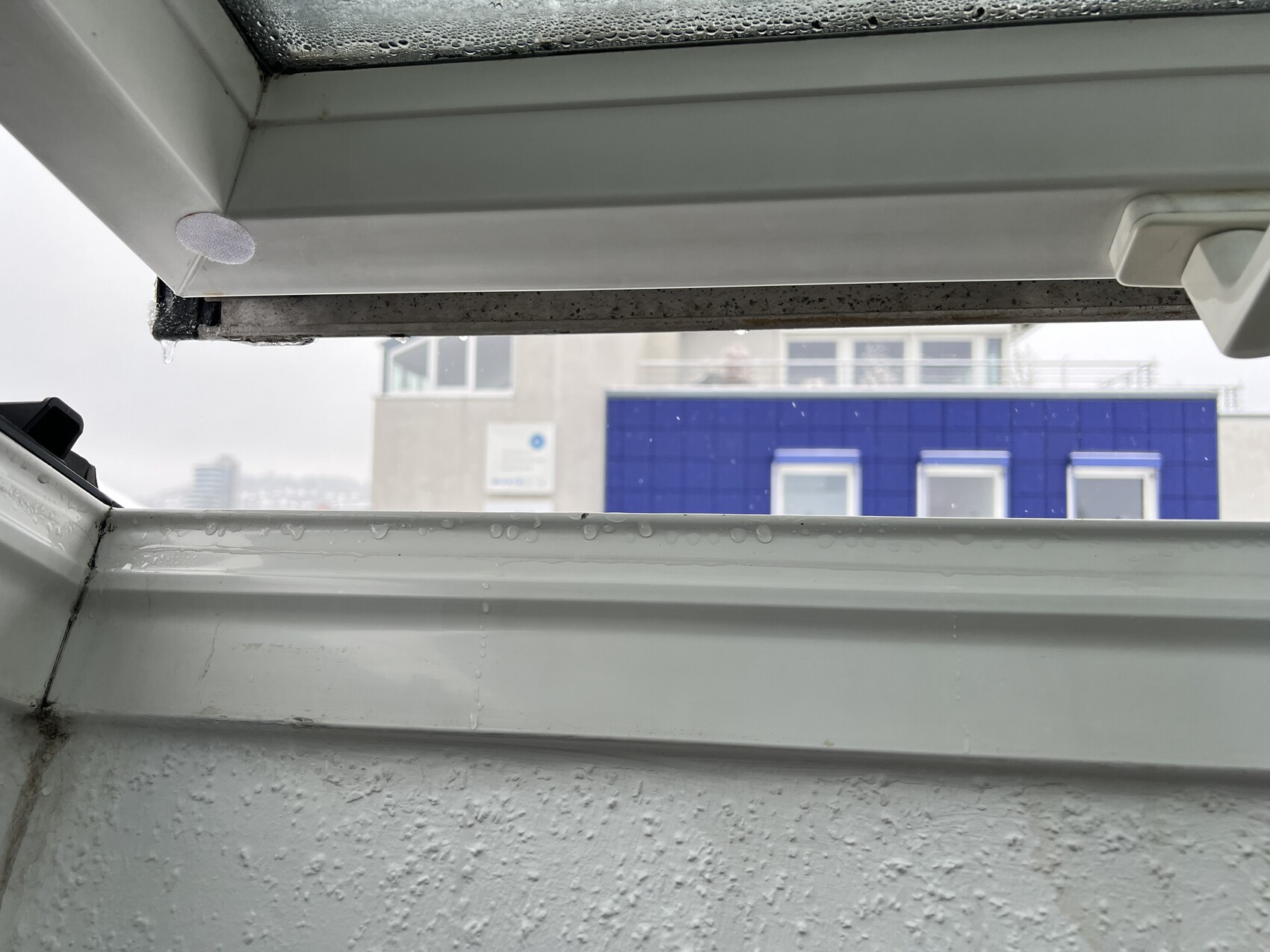 woher kommt das Wasser ? Wir haben leichtes Schwitzwasser an der Scheibe was normal ist. Das Wasser tritt aber am Rahmen ein und läuft runter.