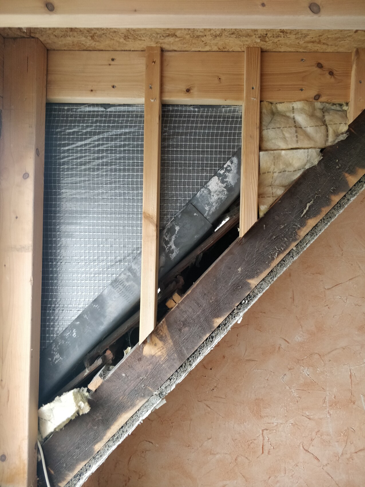 Was muss aber hier nun gemacht werden? Der Vorbesitzer oder der Zimmerer hatte hier nur provisorisch Dämmwolle zwischen die Sparren gelegt und dann wurde das Projekt aufgegeben.