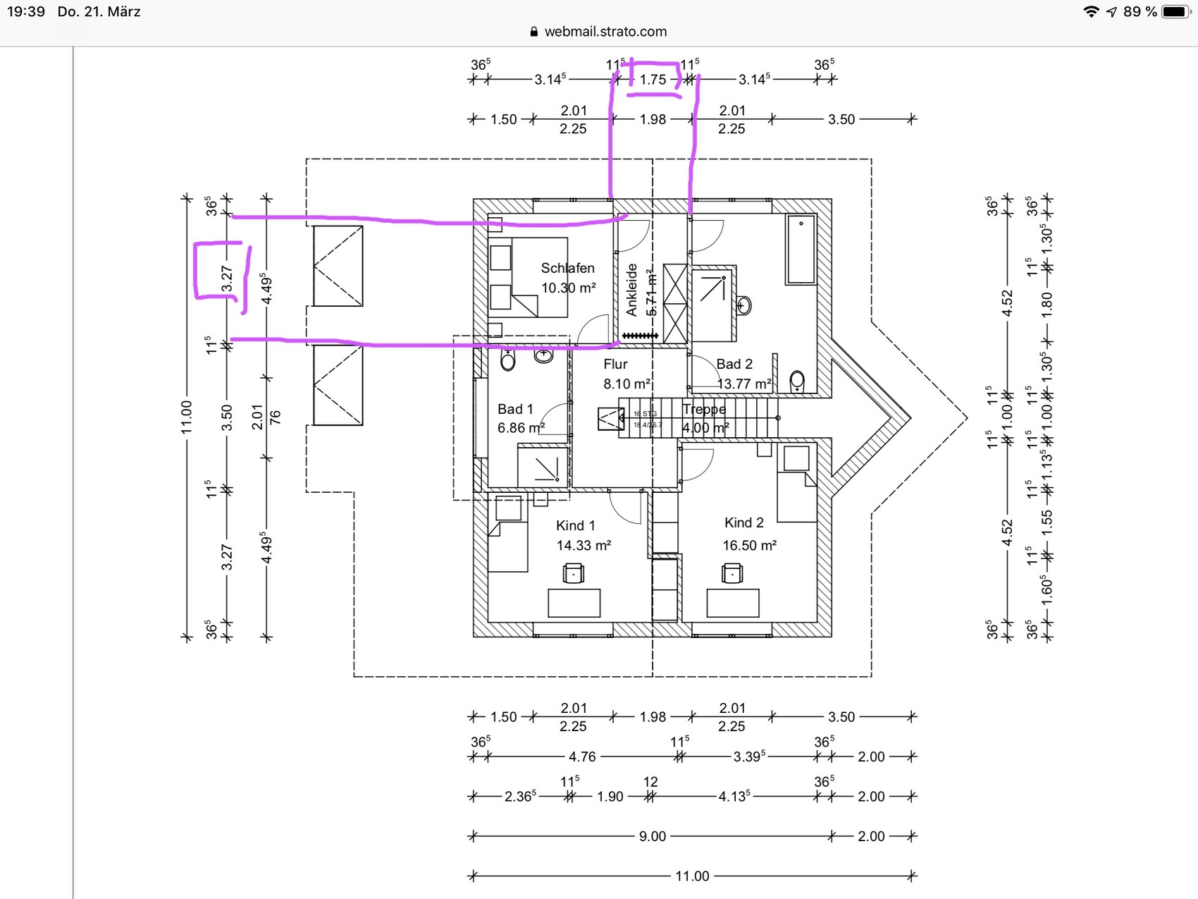 Aber das ist doch Euer Plan, nicht Katjas. hat anders geplant... breitere Ankleide (vermaßt), Schlafzimmer planrechts... -> #14