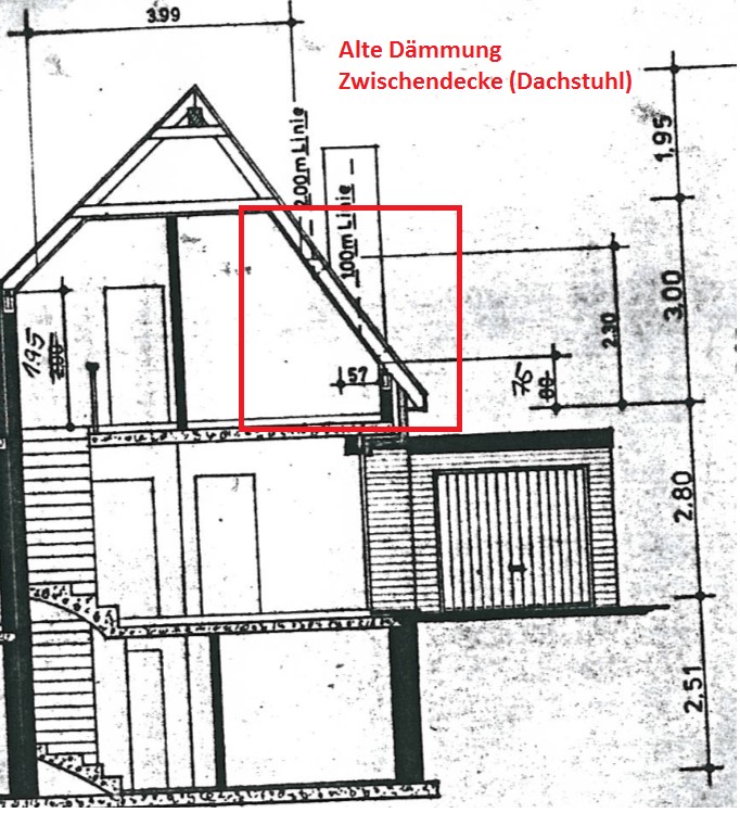 Wie auf den Bildern zu erkennen, plane ich aktuell die Dämmung unser Zwischendecke, zuvor war das Dach ganz normal mit kaschierter Alufolie und Dämmung aus den 80ern gefüttert. Alles nur getackert, nichts geklebt, keine Dampfbremse etc. Der Kram ist irgendwann runter gefallen oder durch einen Marder zerstört wurden.