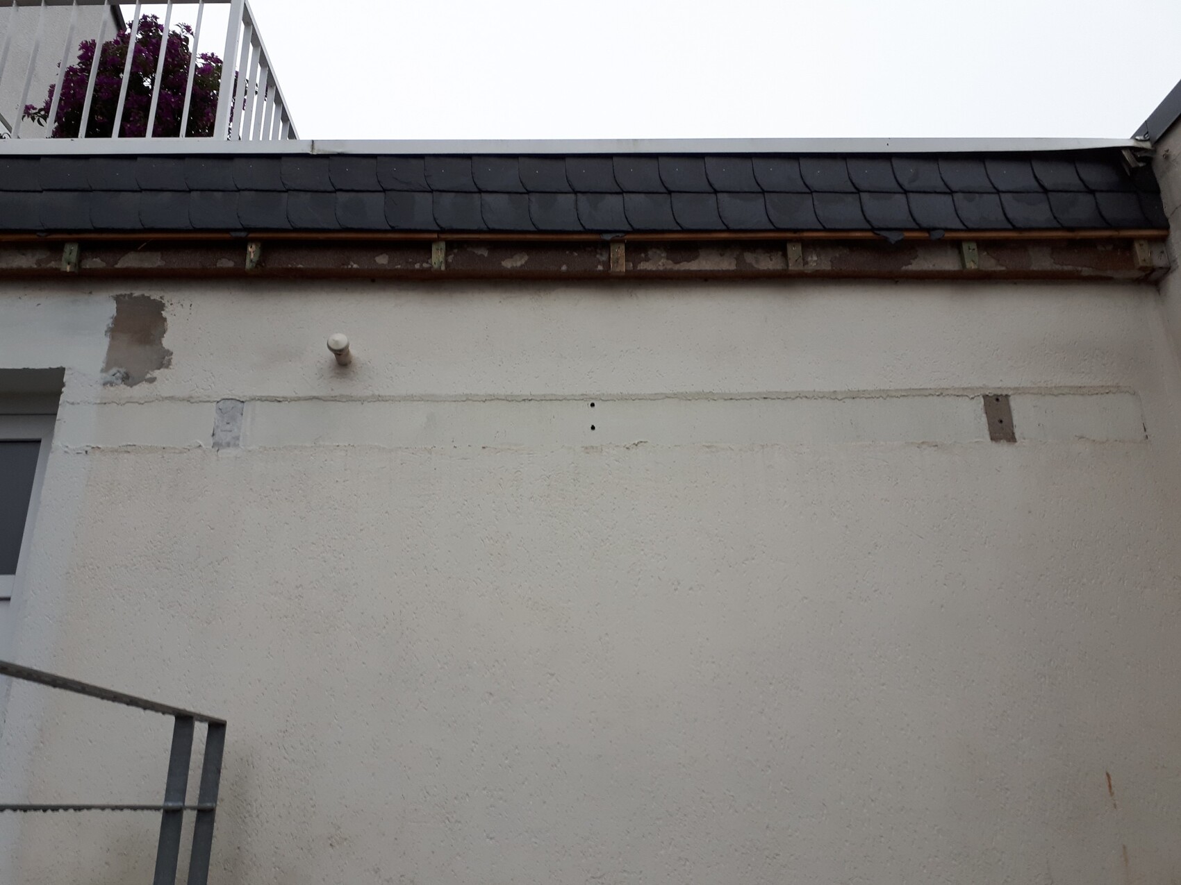 Die Fläche ist etwa 6,5 M breit und rund 3 Meter hoch. Mir schwebt vor, die losen Farbreste zu entfernen, die Wand zu dämmen und neu zu verputzen. Der bisher im oberen Bereich erstellte Schiefersockel soll entfernt werden. Nach Ausführung der Arbeiten wird eine Markise in dieser Höhe montiert. Frage ist, wie und mit welchem Material dämmt man? Materialstärke, bevorzugt nicht brennbar, Klebetechnik oder Dübeltechnik? Unterer Bereich andere Dämmart, falls ja wie tief in den Bodenbereich gehen...Fragen über Fragen. Freue mich über Tipps und Materialhinweise. Danke