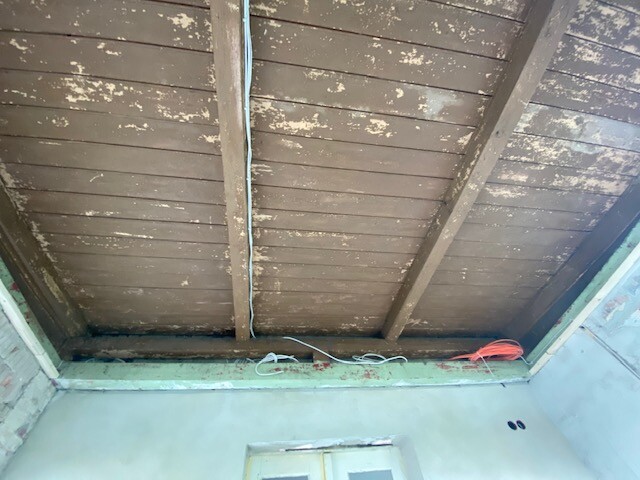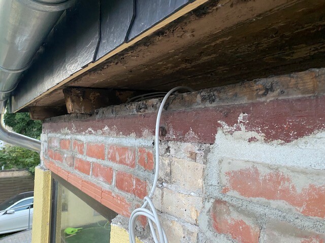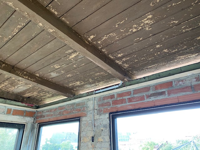 Wir fragen uns nun, wie wir das ganze von Innen abdichten müssen/können, damit wir kein Schimmelproblem bekommen. Bisher war das kein beheizter Raum und das Dach selber war gut belüftet - außen war der unverputzte Teil + das Holz (siehe Bild 1) nur mit Holzbrettern verkleidet. Wir würden gern die Decke innen wieder am umlaufenden unteren Balken (grün) abhängen (Bild 2). Nun müssen wir aber noch die Dachkonstruktion dicht bekommen. Gerade kann man nämlich an der Vorderseite noch nach außen schauen zwischen den Dachbalken (Bild 3).