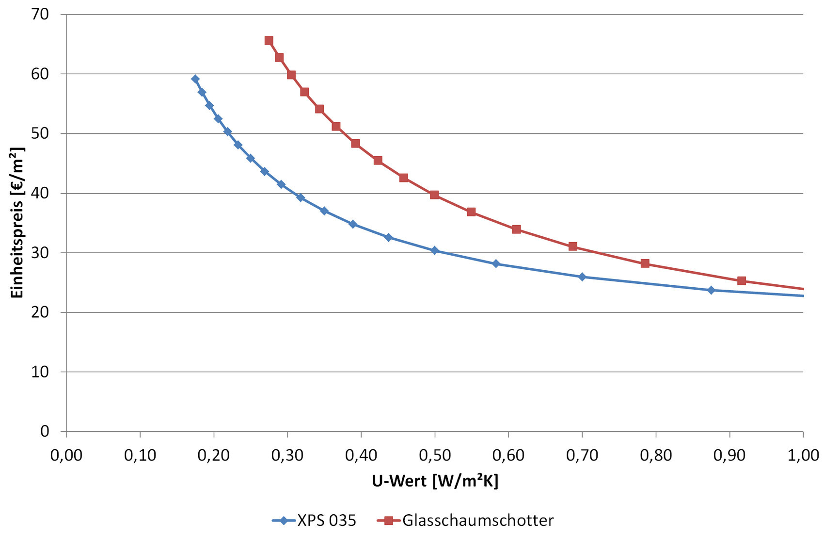 elVincent13.09.16 18:41Wenn ich einfach linear hochskaliere komme ich mit meinen Preisen bei 40 cm GSS auf ca. 65€/m² und 0,28 W/m²K oder alternativ mit 14 cm XPS auf 46 €/m² und 0,25 W/m²K. In dem Bereich merkt man den Preisunterschied ziemlich deutlich, bei 35-40 mm wäre GSS günstiger gewesen.