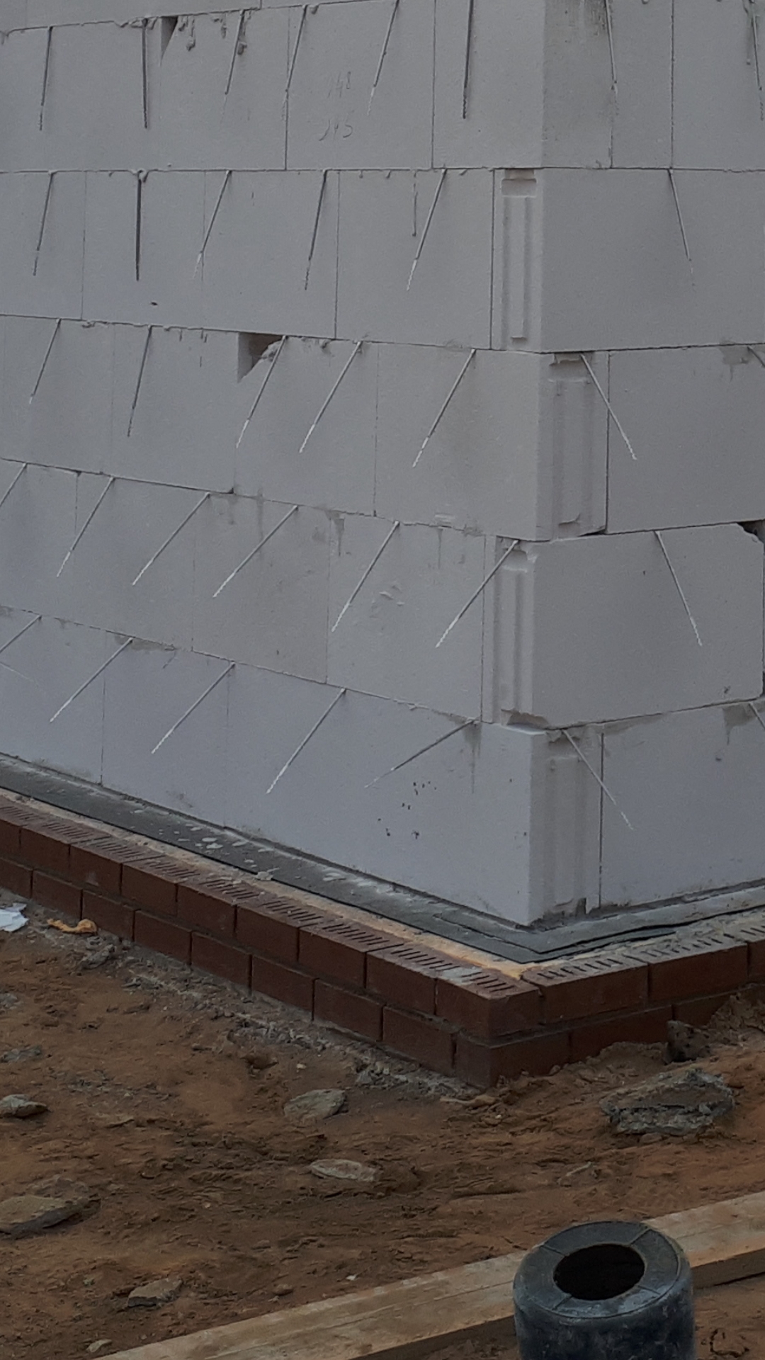 Wir haben eine Bodenplatte mit 80 cm Frostschürze und 10 cm Perimeterdämmung im Sockelbereich (Knabe Klinker) auf der Bodenplatte dann 17,5 cm Ytong, 18 cm Mineralwolle, 2 cm Luftschicht und 11,5 cm Verblender.
