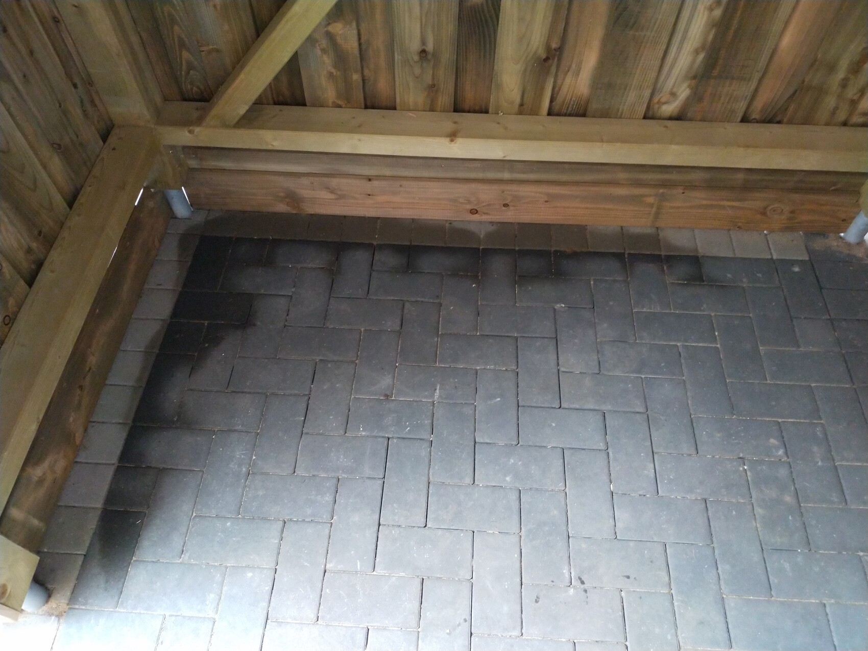 Bei dieser Art Schuppen kenne ich viele, die deine Probleme haben und noch keine richtige Lösung gefunden haben. Laut einem Bekannten machen aber viele den Fehler, dass der Abstand zwischen Holz und Pflaster zu gering ist.