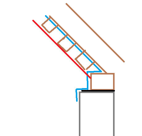 Meine Vorstellung war, die Dampfbremse direkt an das verputzte Mauerwerk anzuschließen, um hier Sauber abzuschließen. Allerdings und hoffentlich auf dem Bild erkennbar, schließt die Fußpfette und der Porenbeton nicht bündig ab, sondern es ist kleiner "Vorsprung" von 4-5cm vorhanden. Darauf ist eine schwarze Folie (gummiartig, Dachfolie?). Ich habe das mal im anderen Bild aufgemalt.