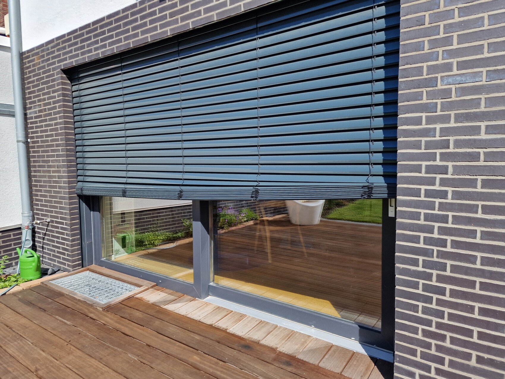 Beim letztmaligen herunterfahren haben wir ein Spielzeug übersehen, was dazu führte, dass das Raffstore einseitig ca. 30-40 cm hoch hing. Am nächsten Tag hochgefahren und die Lamellen hängen nun schräg/verbogen. Einmal hochgefahren, hatte sich das nicht gerlöst und nun haengt das Raffstore ungefähr auf Fenstermitte und bewegt sich gar nicht mehr. Weder funktioniert die Lamellenneigung, noch hoch/runter. Der Motor arbeitet hörbar, die beiden Wellen, die im Motor stecken, drehen sich nicht.
