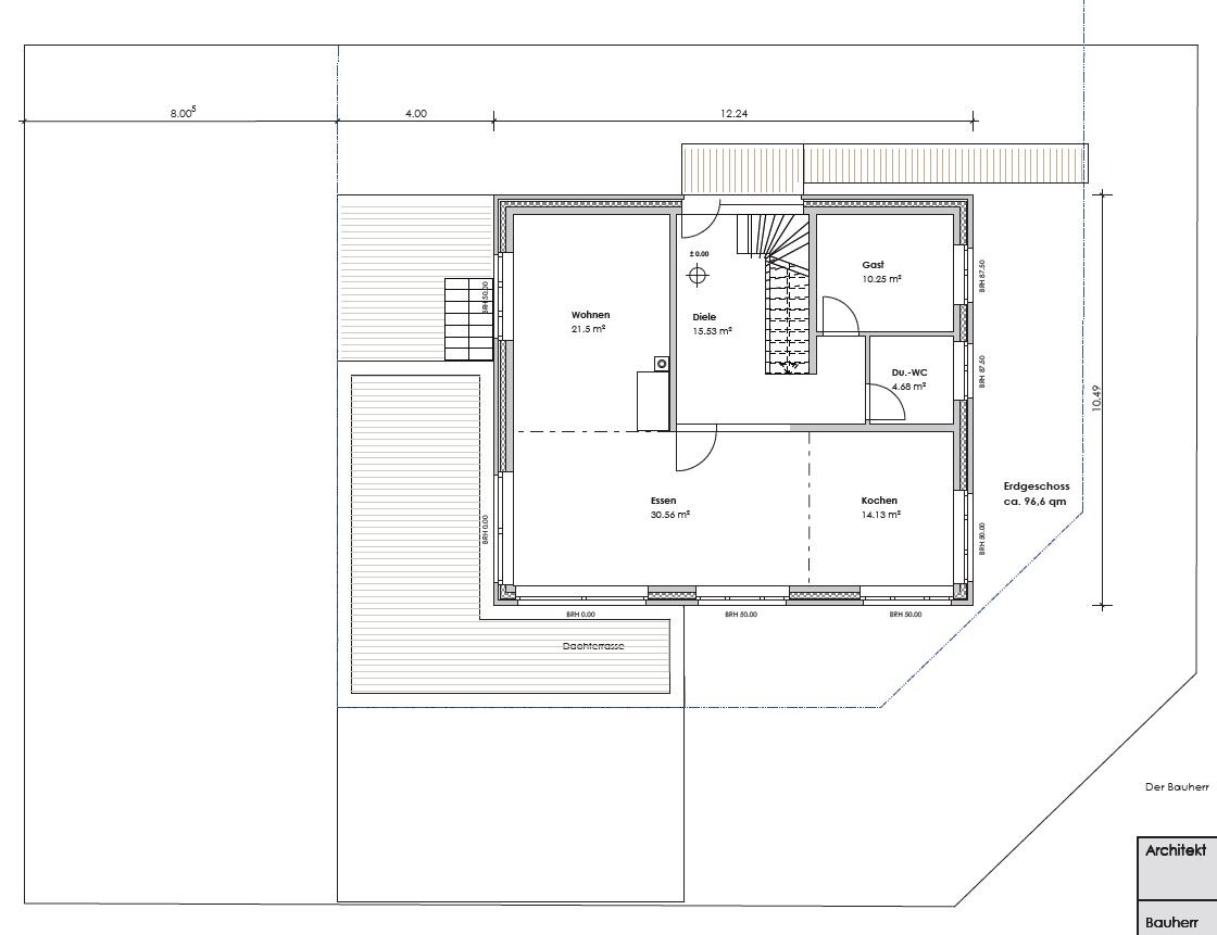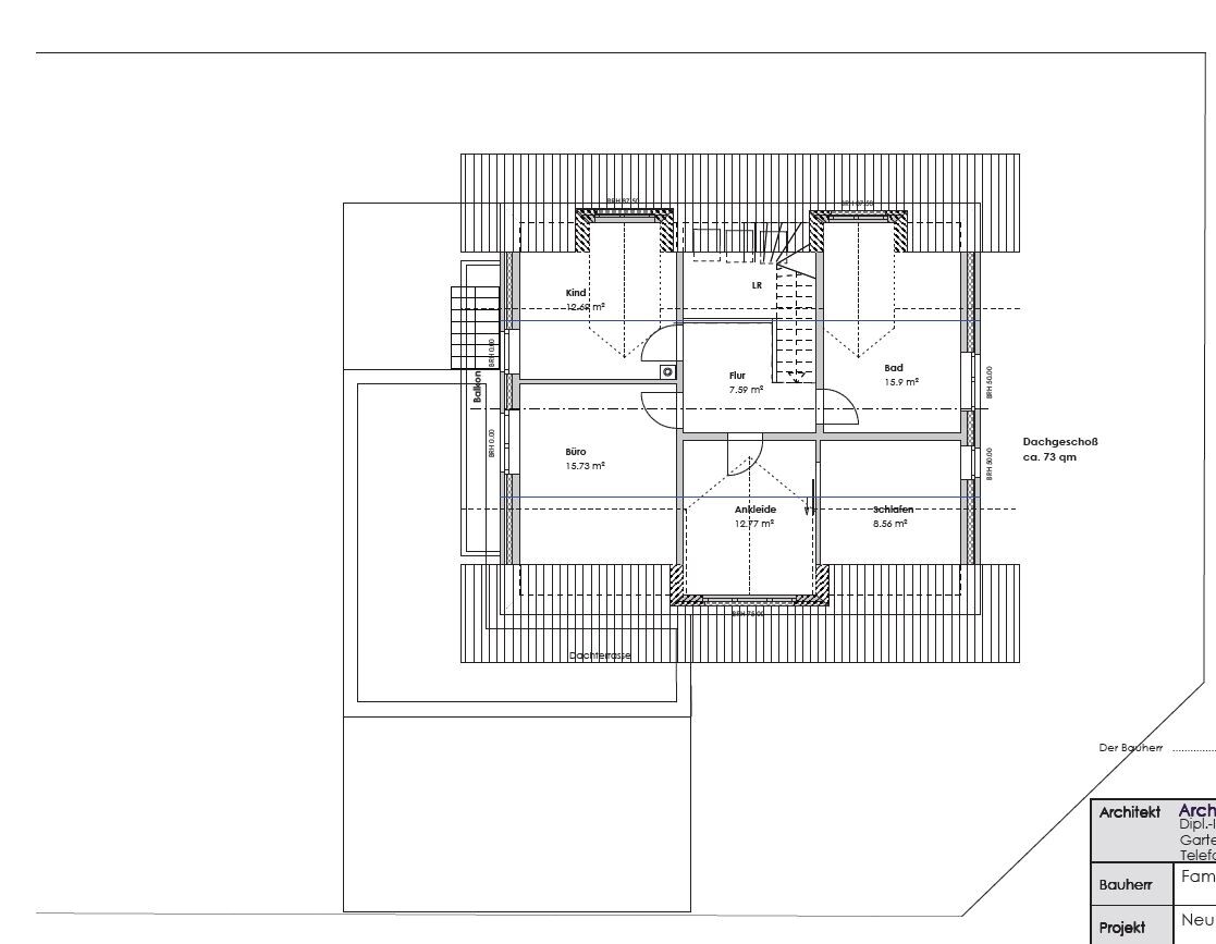 das EG hingegen 96,6 m2Es geht hier um Brutto-Flächen. Dein EG hat 128,4m² Grundfläche. Die Fläche des DG, die mehr als 2,20m lichte Höhe hat, darf also 85,6m² betragen. Du brauchst also die 2,20m-Linie im DG-Grundriss. Im CAD ein Kinderspiel, mit analogen Plänen Quälerei. Dein Planer sollte das aber problemlos hinbekommen, vielleicht mit Einbußen bei der Ankleide oder den Gauben.Guido1980 schrieb: