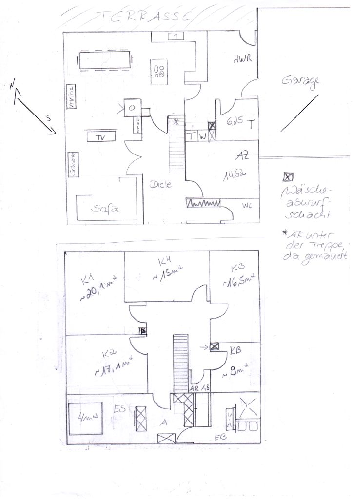 Problem als Laie ist halt, dass man irgendwann denkt, das ist es jetzt und nicht mehr in Erwägung zieht, neu anzufangen. Hier hat sich das Wohnzimmer nur ergeben, oben wird auch aneinander gereiht. Schlafzimmer ist Durchgangszimmer, eventuell mal waschen im OG einplanen, wie sonst ja auch gern geraten.