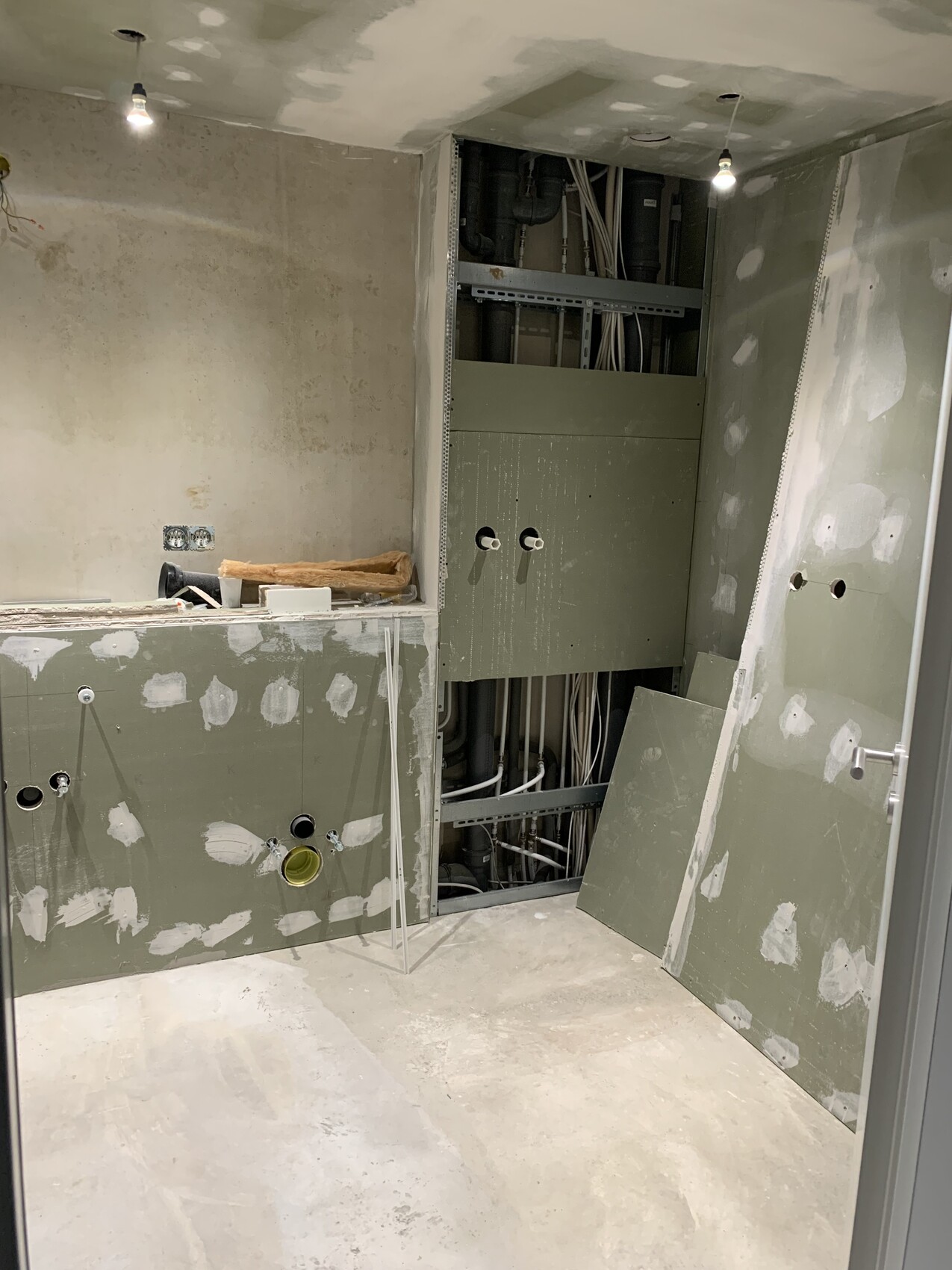 Im Zuge des Kabelziehens haben wir einige Trockenbauwände wieder geöffnet. Ich sag mal so, es sah aus wie „noch kurz Aufräumen bevor Besuch kommt“ - einfach jeglicher Schrott unten reingekehrt und zugemacht. Naja. Unser Sanitär muss noch mehr aufmachen, ich hoffe den trifft da nicht der Schlag.