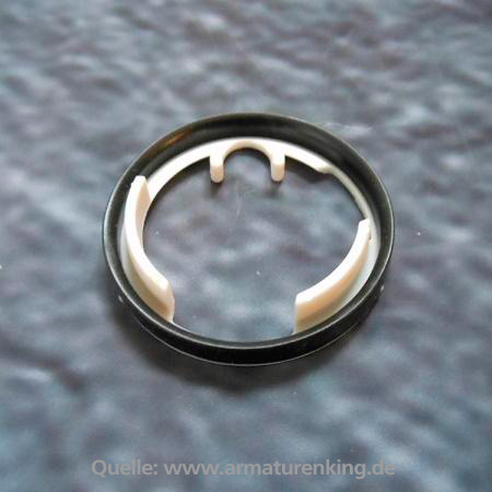 Runder Kunststoff-Dichtungsring in schwarzer Halterung, beige Innenteile sichtbar