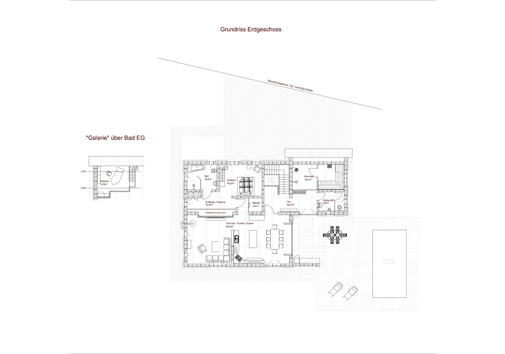Garage würde ich immer an die Grenze ziehen. Auch wenn bei dieser Grundstücksgröße das zweitrangig ist. Ihr wisst nie welchen schönen Pool ihr wo hinstellen werdet 😉