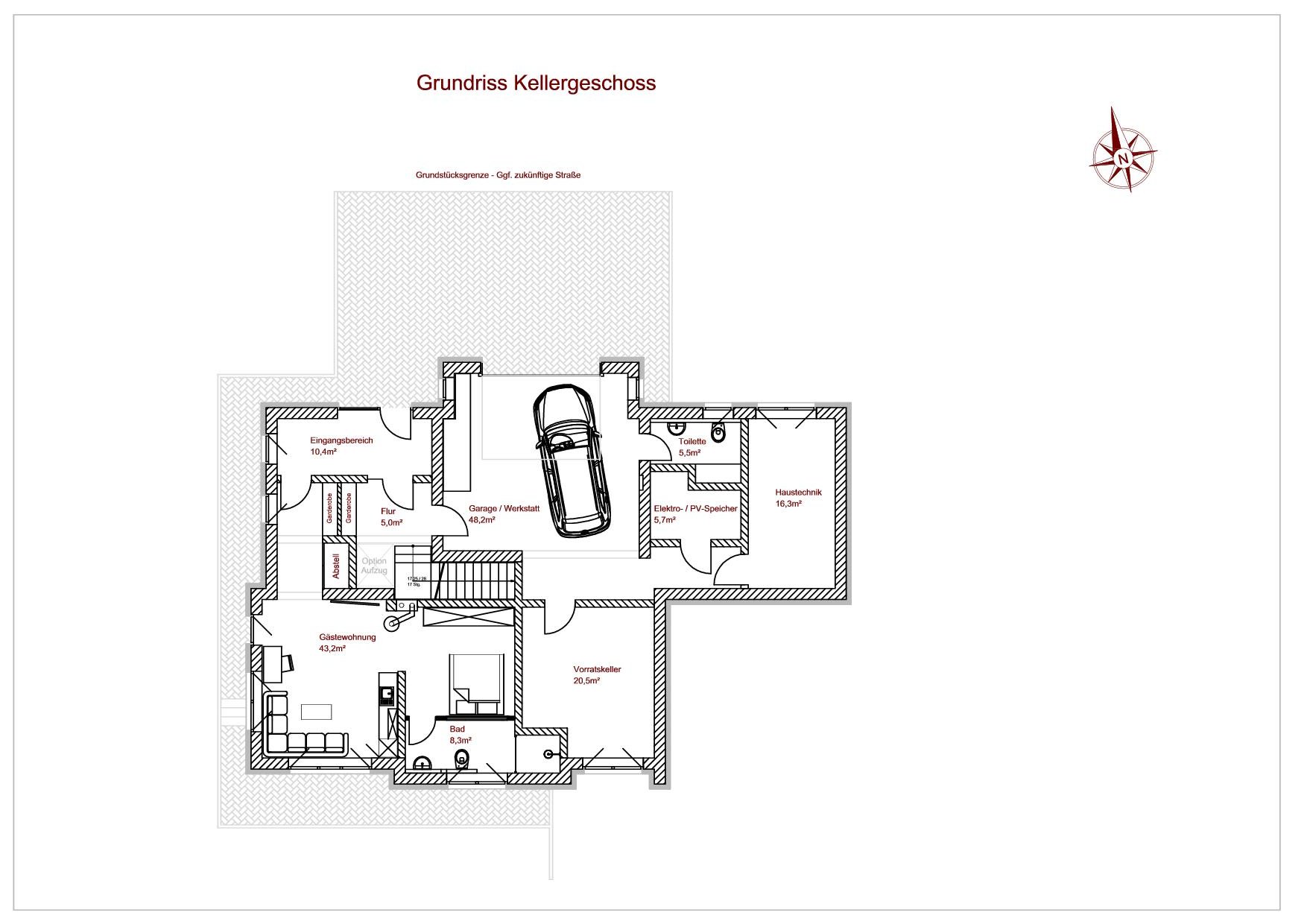 - Garagensituation - Wenn wir irgendwann auf E-Auto umsteigen müssen wird es definitiv eine getrennte Außengarage geben, wir stellen uns kein