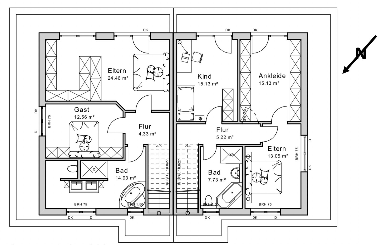 Ein Grundstück ist gekauft und zusammen mit dem Architekten unseres Vertrauens planen wir dort den Bau eines Doppelhauses für uns und meine Eltern mit Blick in den Wald.