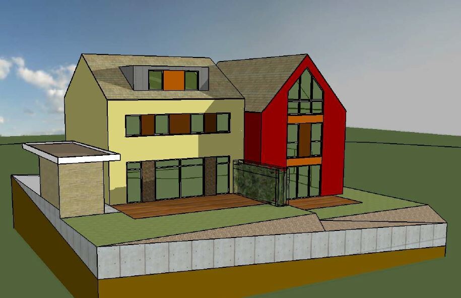 D.h. die Firstrichtung der zweiten Haushälfte steht quer zur ersten ?Genau. Hier wäre dann die Breitenausnutzung des Grundstückes besser. Man würde quasi eine Art "Eckhof" generieren. Ich hänge mal einen Screenshot der ersten Höhenstudie an (nur ein ganz grober Versuch!! Da ging es nur um die Machbarkeit bzgl. FH etc.)11ant schrieb: