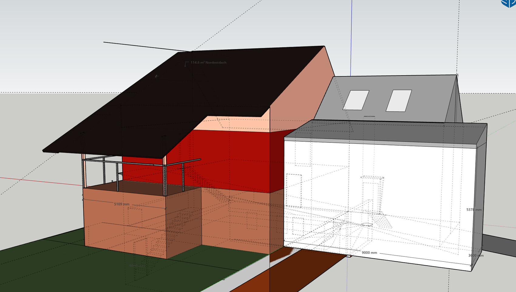 - ob der Anbau im Keller unterkellert wird oder nur eine ausgekragte Bodenplatte bekommt, hängt vom Budget und der QNG-Berechnung ab