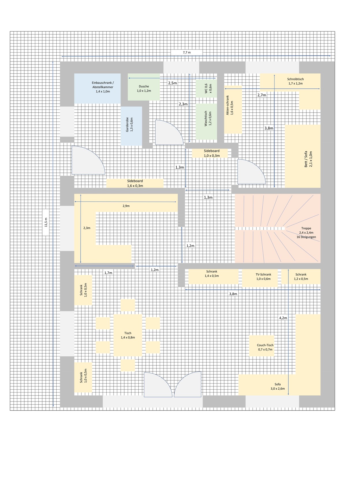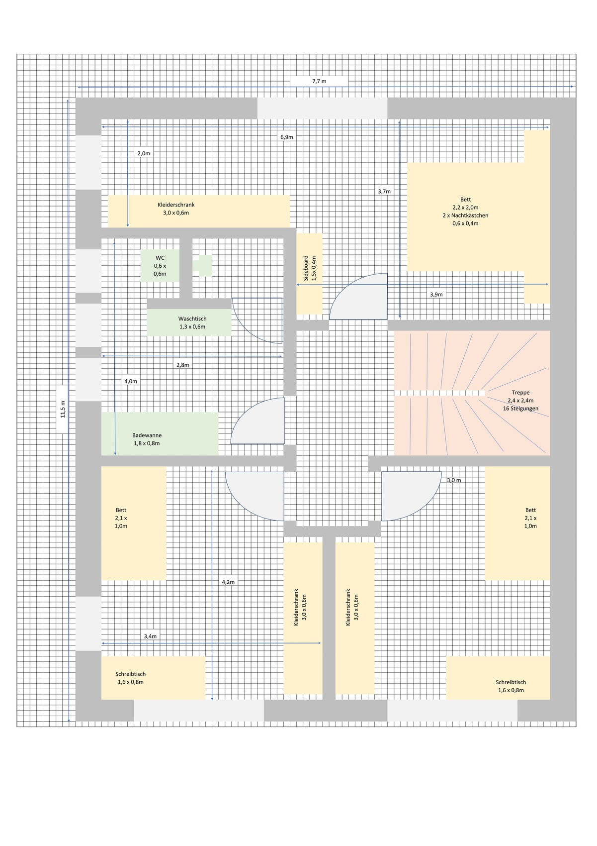 - Wandstärken angepasst zu realistisch. Außenwände alle zu 40, Innenwände zu 20.