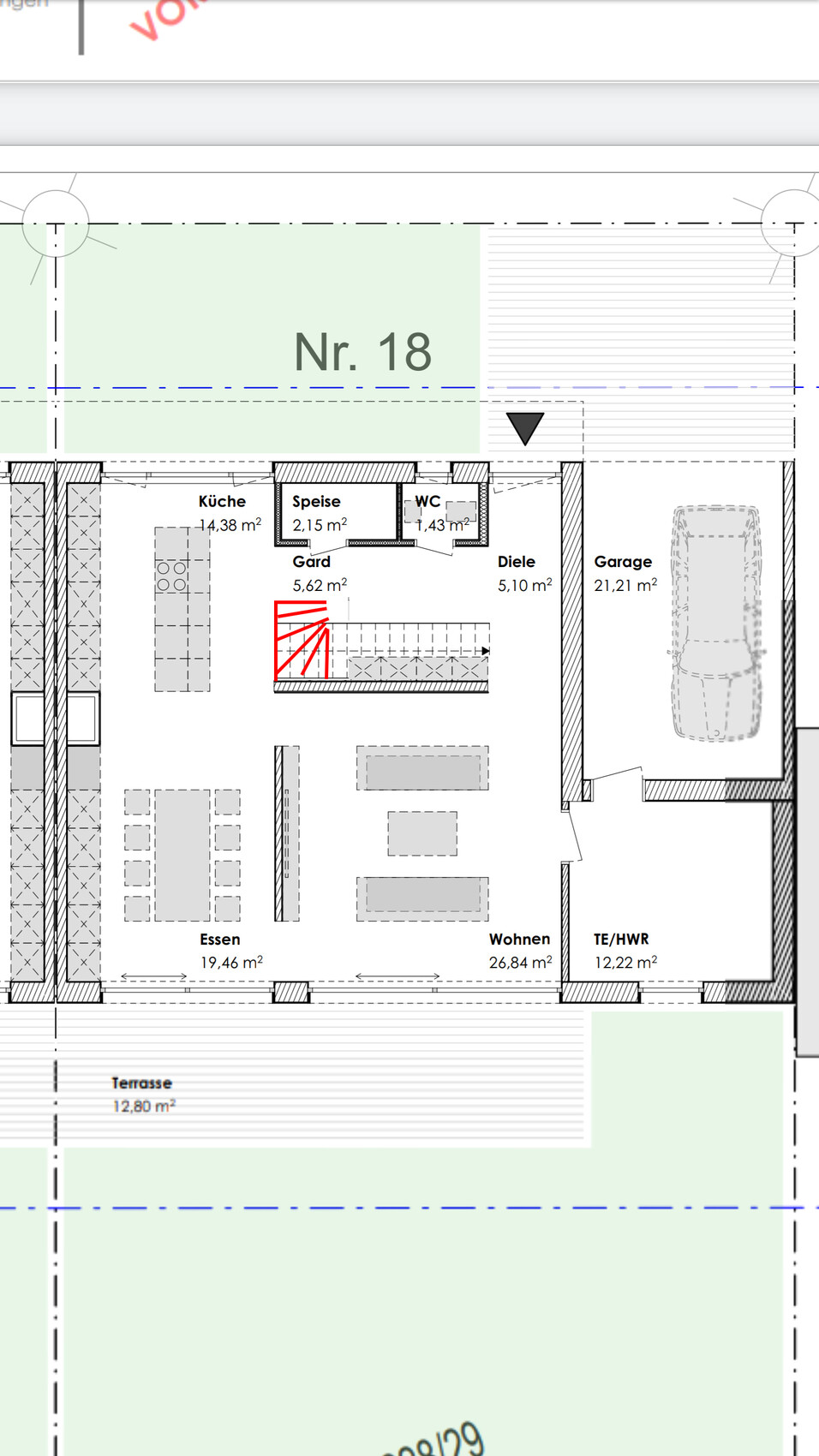 Vielleicht überlegt man doch lieber, das Küche und WZ die Plätze wechseln. Dann könnte man die Chillecke beruhigen und wäre mit der Küche am Hauswirtschaftsraum und an die Terrasse angeschlossen.