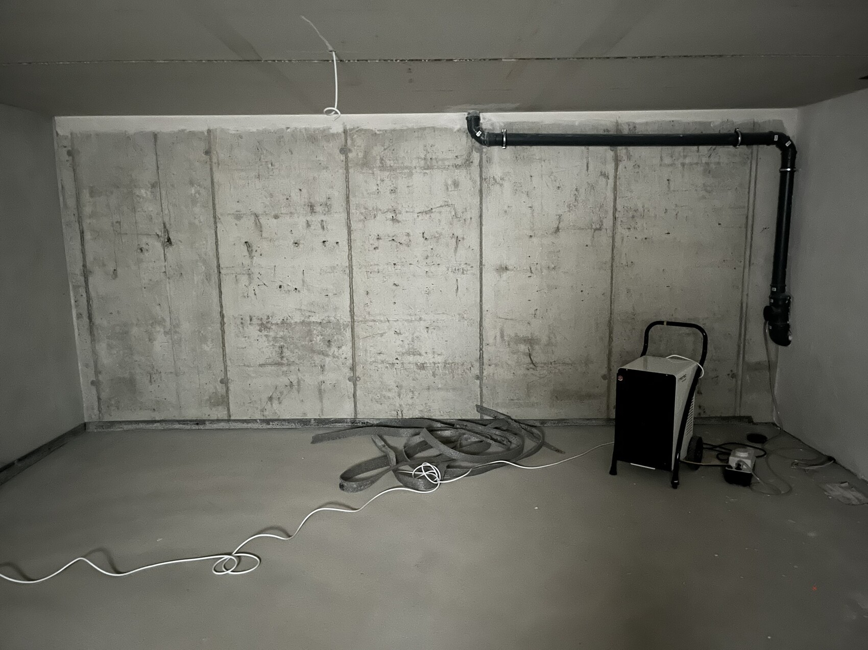 wir bauen eine Doppelhaushälfte massiv mit WU-Keller. Ein großer Kellerraum ist als Hobbyraum angedacht (Keller 3 auf dem Bild). Die drei von vier Wänden in diesem Raum wurden mit Kalkzementputz bekleidet - außer die Kommunwand zu Nachbarn (s. Foto). Die Kommunwand ist auch die WU-Betonwand.