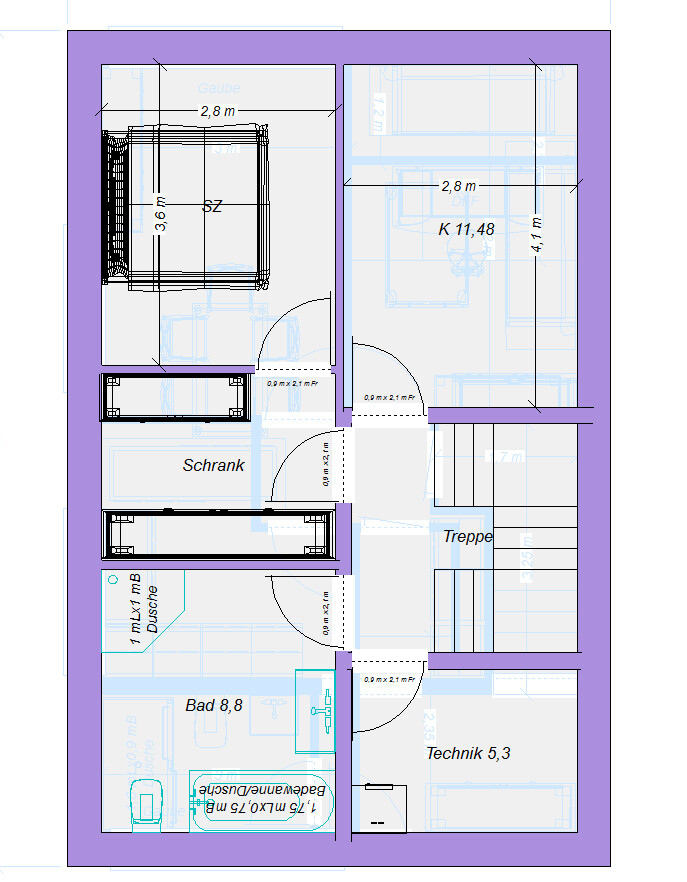 Dann setz ich mal frisch fröhlich 2 fette Gauben ins DGzusammen mit der geänderten Treppenführung: Applaus! Bislang der mit Abstand beste Grundriss hier.Ähnliche Themen