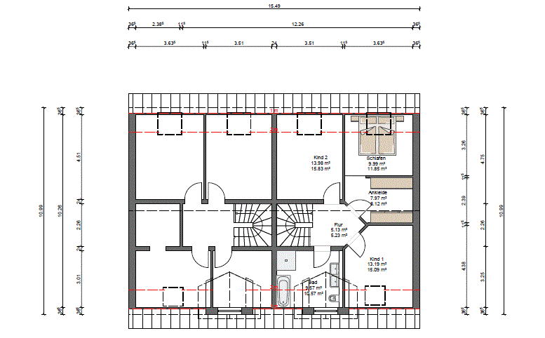 Wir sind eigentlich schon einigermaßen zufrieden mit dem Entwurf, haben allerdings noch gar keine Berührungspunkte zum Thema bauen und beachten wahrscheinlich vieles nicht. Ursprünglich war eine gerade Treppe geplant, allerdings wurde uns mitgeteilt das dies nicht sinnvoll sei. Zudem wollten wir den Speicher auch über eine richtige Treppe erschließen, auch dies wurde uns mehrfach ausgeredet.