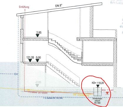 Bei mir ist der Unterschied aber nicht so groß wie bei dir (Bodenplatte liegt etwas auf Kanalniveau, Grundstück mit starkem gefälle am Anfang).
