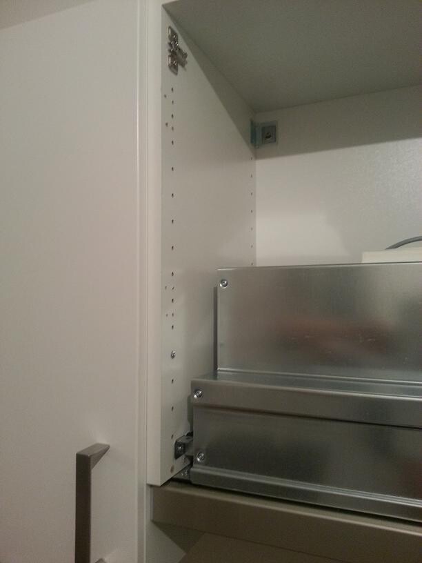 Das ganz unterste Loch ignorieren, dort war ja die Unterplatte. Die zwei darüber wären die für die Scharniere, aber mit der Metallleiste für den Abzug geht sich das "gerade nicht" aus.