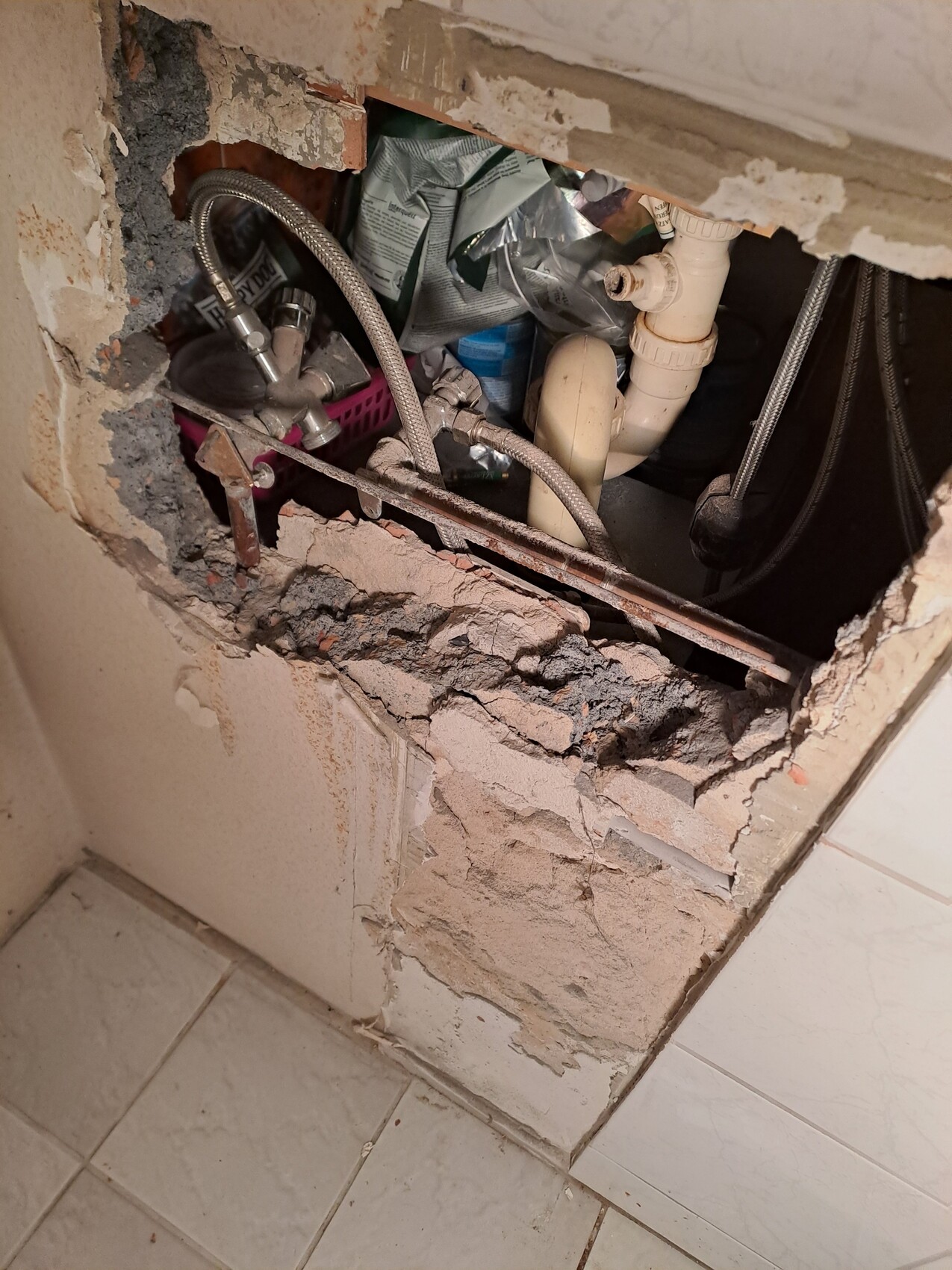 Ich müsste jetzt die Wasserleitung so verändern dass ich auf der einen Seite eine Badewannenarmatur anschließen kann und auf der anderen Seite ein Waschbecken.
