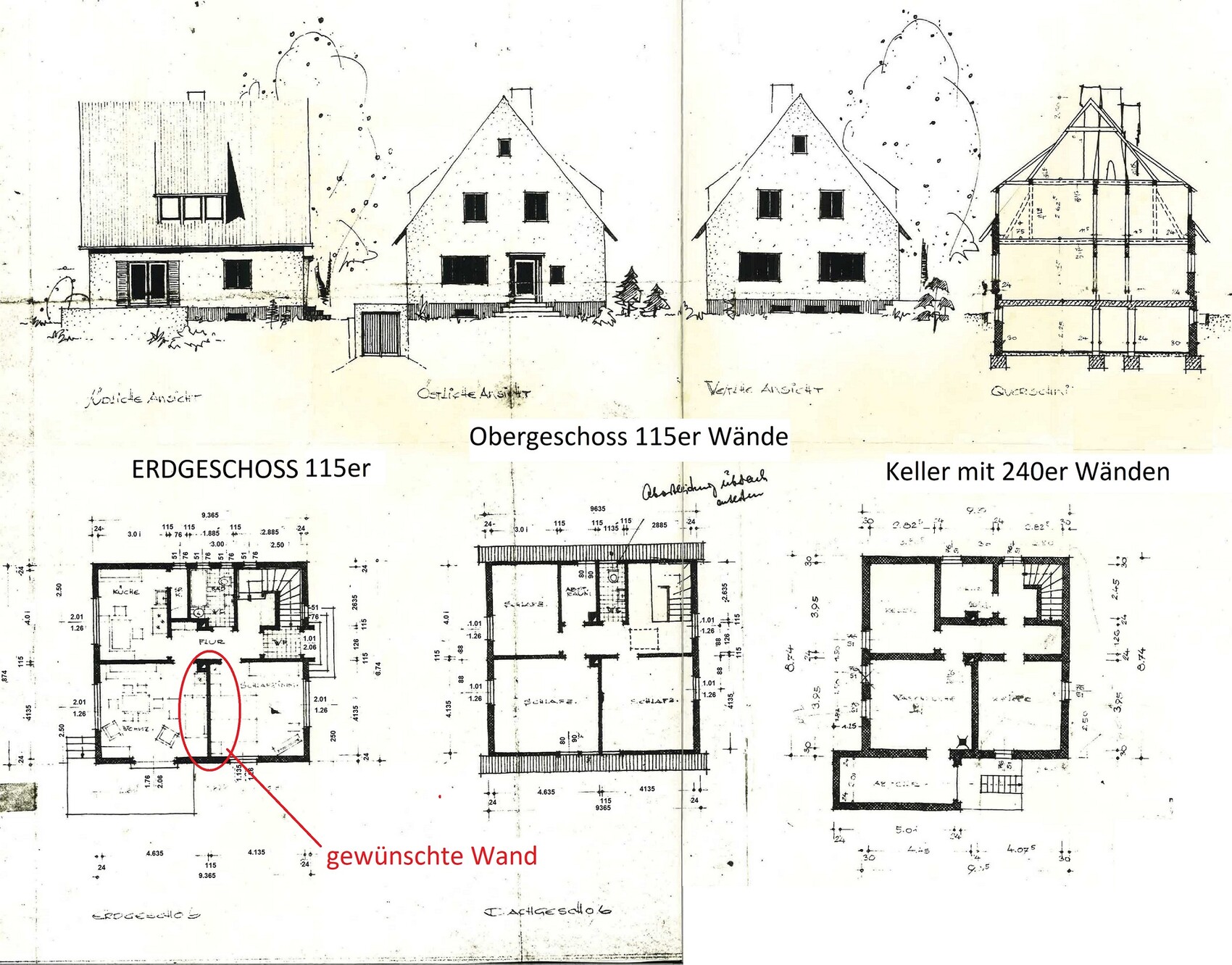 Die Wand ist aus stinknormalen Ziegeln. Ich gehe leider davon aus das die Wand tragend ist. Hier einmal ein abgespeckter Bauplan (ich hoffe die Auflösung lässt es zu). Das Kellergeschoss besteht aus 240er Wände. Da drüber (bis auf die Schächte) aus 115er Wände. Über der Wand wo der Sturz rein soll ist eine Wand des Obergeschosses.