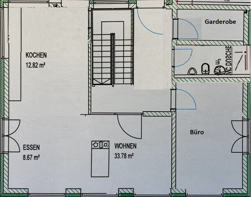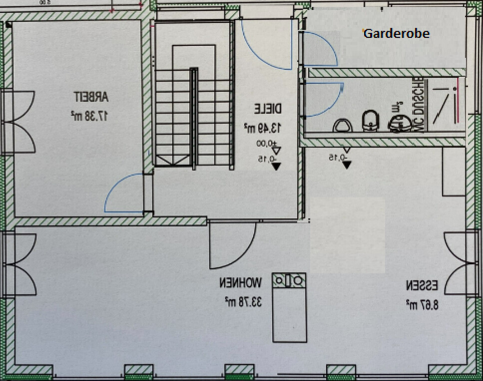 Wobei die oben stehende Umplanung (Küche größer und WC an die Nord/Westseite) mir schon besser zusagt. Wenn die Treppe noch anderweitig gestaltet werden könnte, wäre das gut.