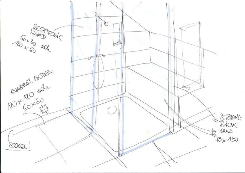 - wir wollen eine Dusche mit Sitzbank machen (Skizze)