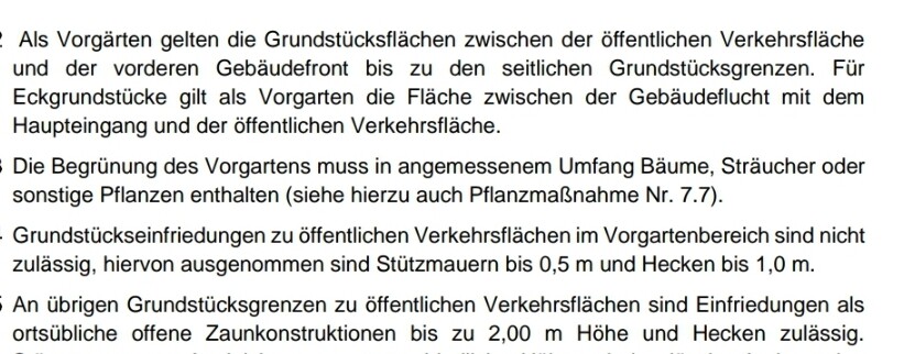 Allerdings interpretierst Du den Bebauungsplan etwas falsch. Da geht es nur um Definition und der entsprechenden Anpflanzung.