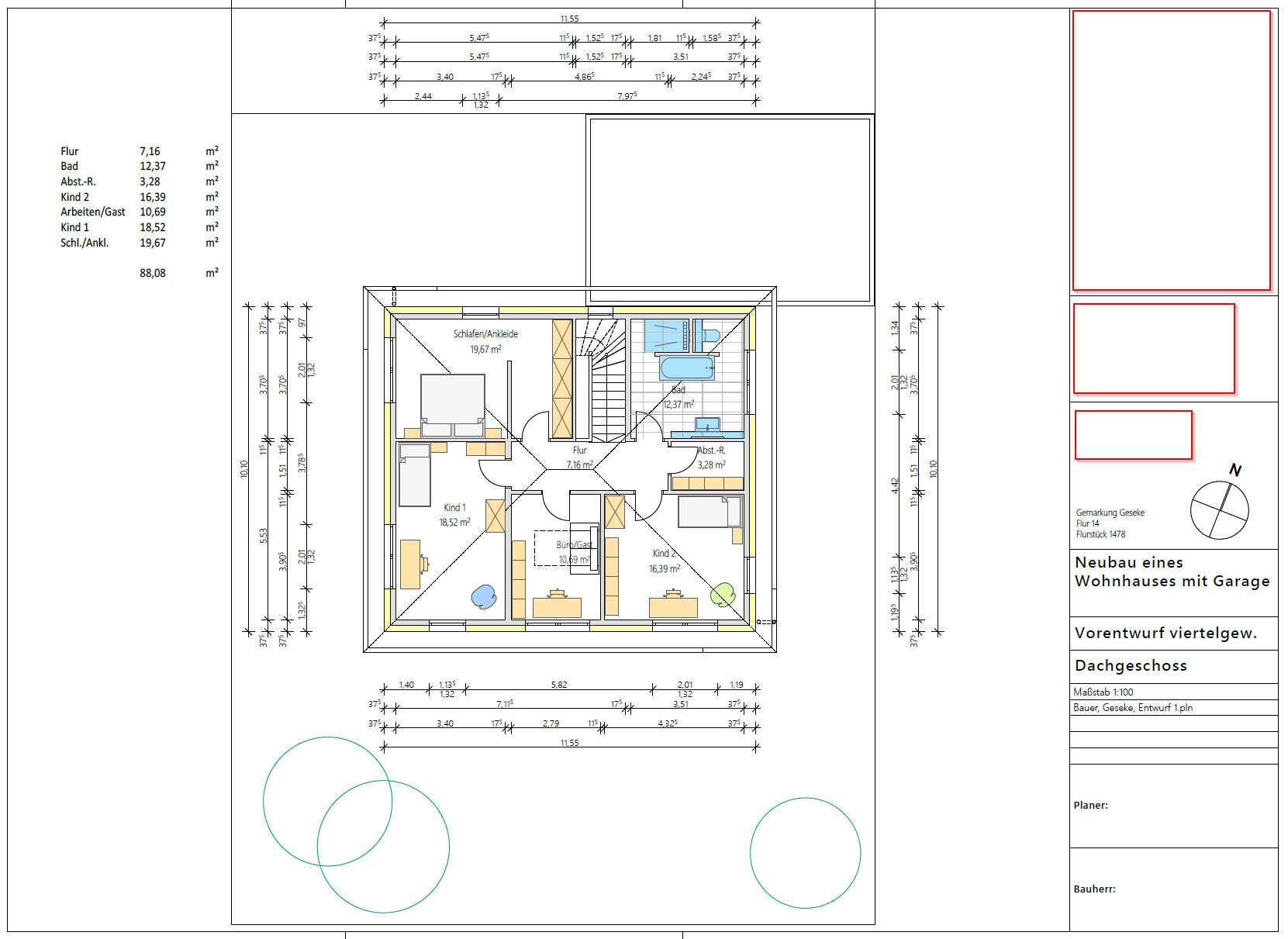 Schieben wir das Haus weiter rein, dann haben wir eine größere Überlappung mit der Garage und der auserwählte Grundriss funktioniert nicht mehr.Wenn auch die Kinder und die lebendigen Haustiere ihre Wünsche geäußert haben, dann kommen - vielleicht ? - auch die Blechtiere an die Reihe. Eine Garage ist eine Nebensache und darf erst fressen, wenn die Anderen vom Rudel satt sind.dimba23424.02.23 18:32