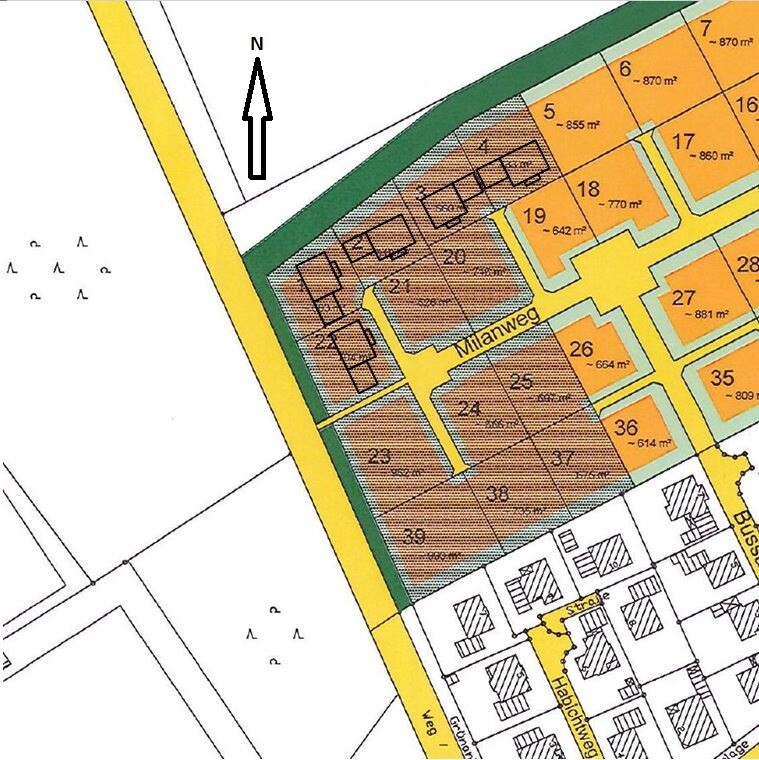 Wir haben uns auf die 5 Grundstücke beworben, in denen das Haus (grob und nicht maßstabsgetreu) im Lageplan eingezeichnet ist.