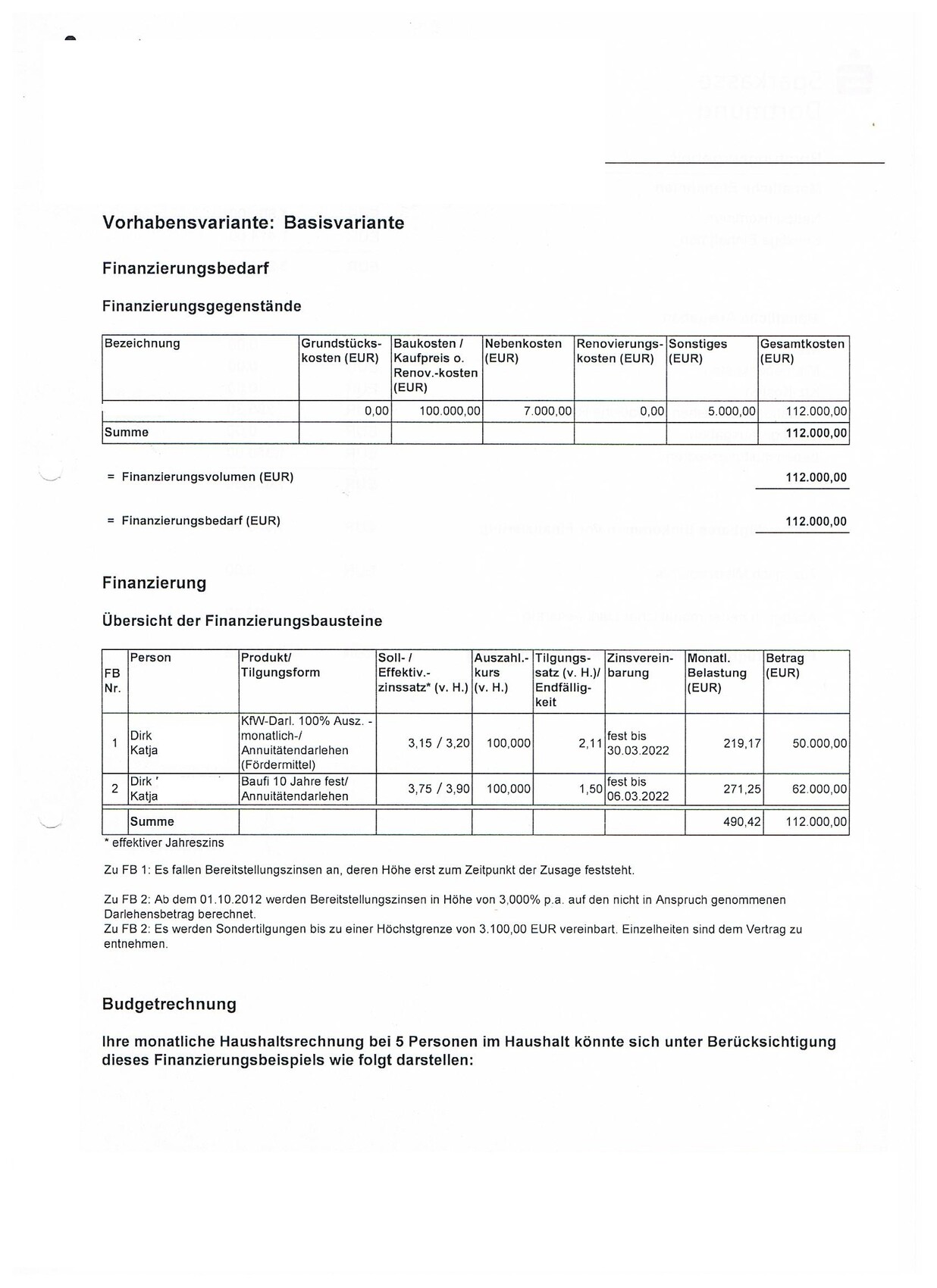 Hatte mir bei meiner Hausbank Folgendes Angebot eingeholt,