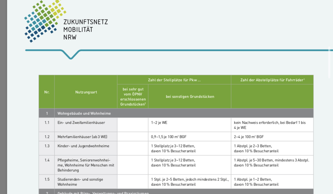 - Die geltende Stellplatzregelung in §51 Bauordnung NRW tritt zum 01.01.2019
