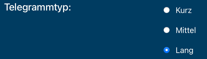 2.) Weiterhin muss ich den Telegrammtyp angeben. Was ist hier sinnvoll auszuwählen und warum?