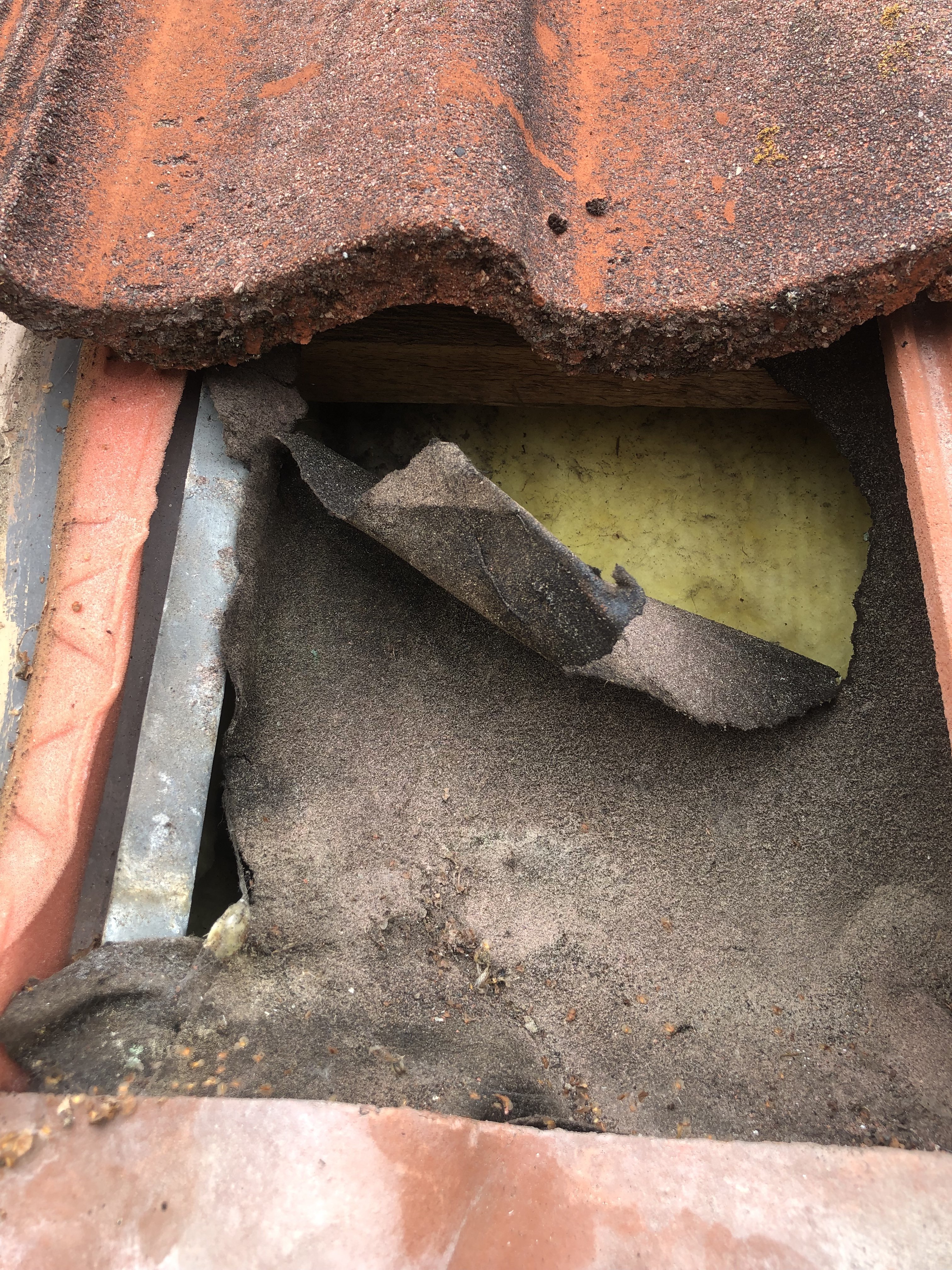 Ich habe heute einmal 4 Dachziegel abgenommen um zu schauen was mich unter den Ziegeln überhaupt erwartet (Zustand der Dämmung und Unterspannbahn).