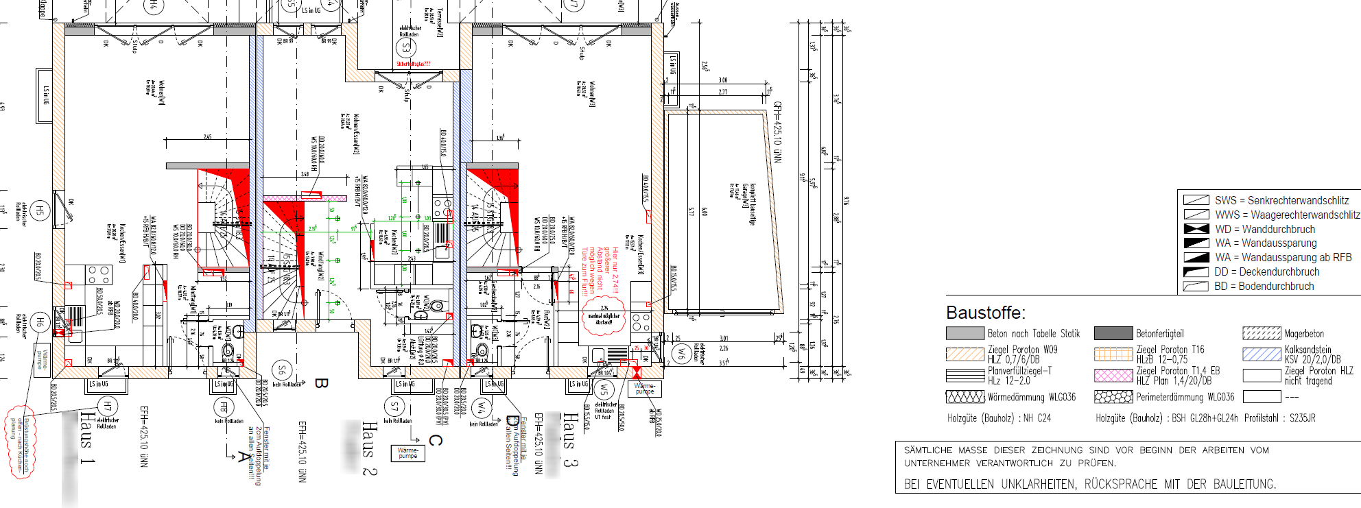 Unter dem Beton ist Kalksandstein. Der Beton wurde über die Steine gegossen. Keine Ahnung ob das so richtig ist, das geht für mich (als Laien) auch nicht wirklich aus den Plänen hervor.