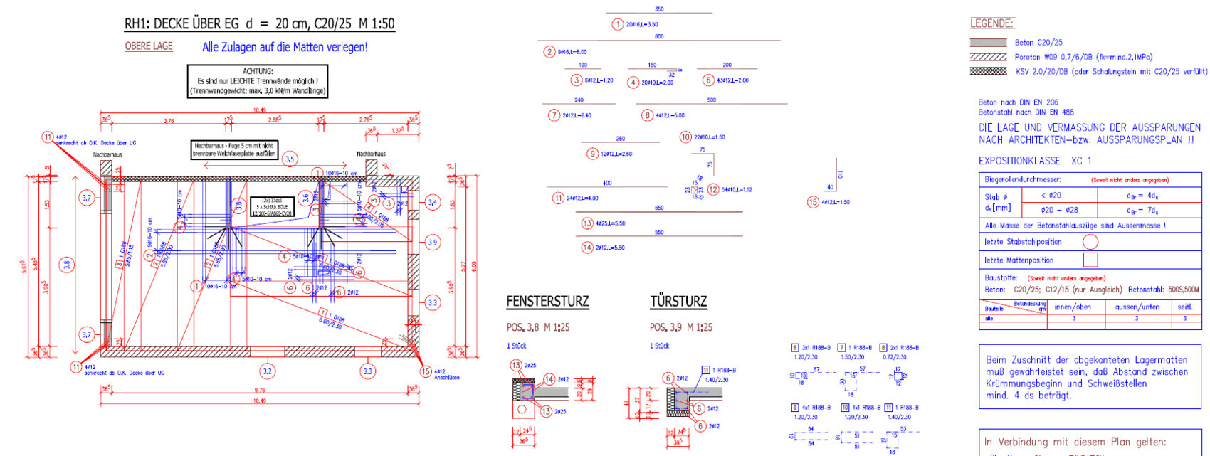 Ich wuere hier gern mal Ausfuehrungsplaene von der Trennwand sehen wollen. Warum sind da keine Eisen drin? Stahlfasebeton?Ich hoffe, dass das das ist was du sehen wolltest 🙂