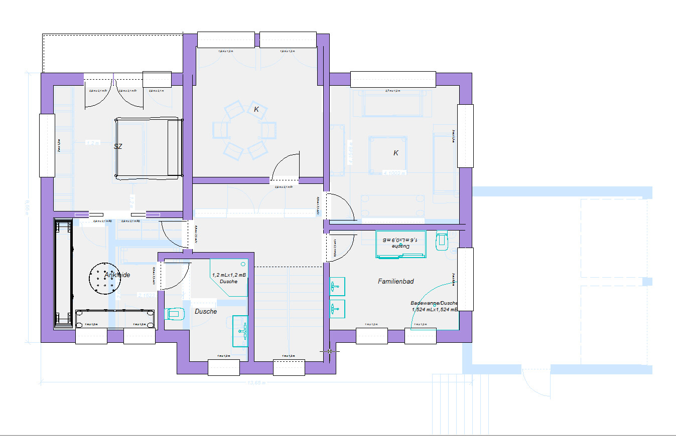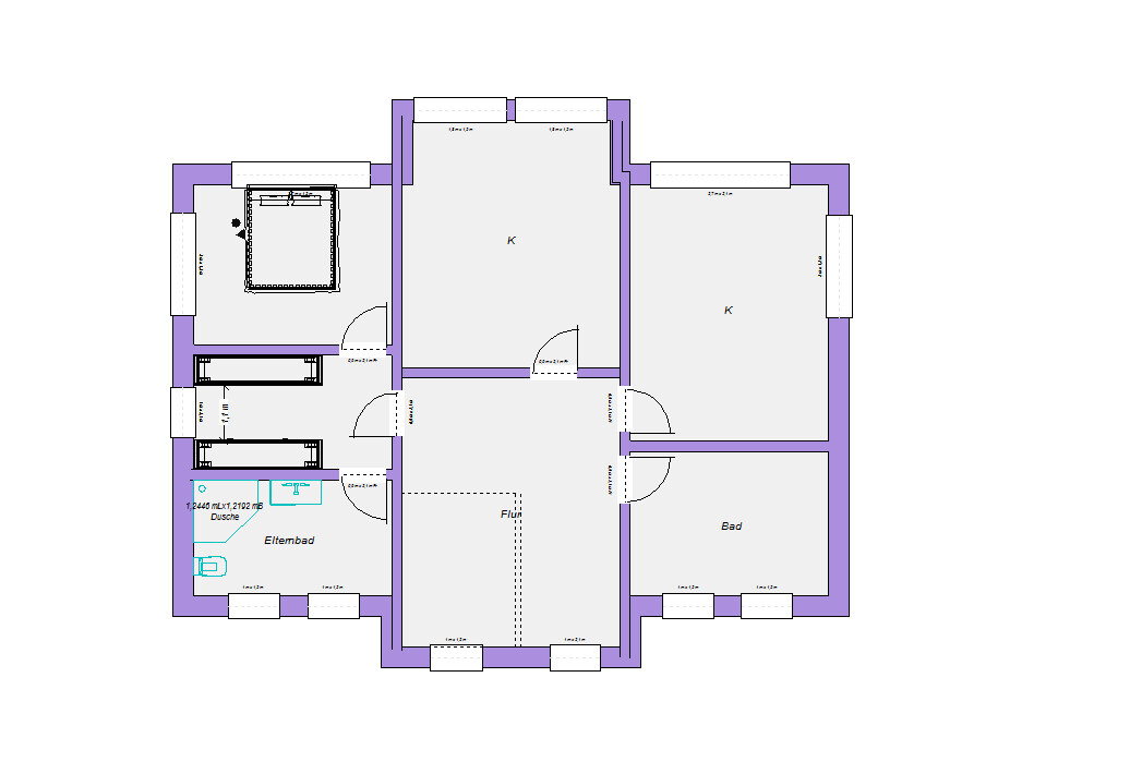 Das Schlafzimmer in den Osten zu zwingen fällt mir hier schwer, da dann der Elterntrakt verhältnismäßig eng wird. Zudem stünde das Bett unterm Fenster - man kann zwar das Fenster weglassen, aber das schadet der Außenansicht. Mh. Wieso muss man noch mal nach Osten schauen im Schlafzimmer?