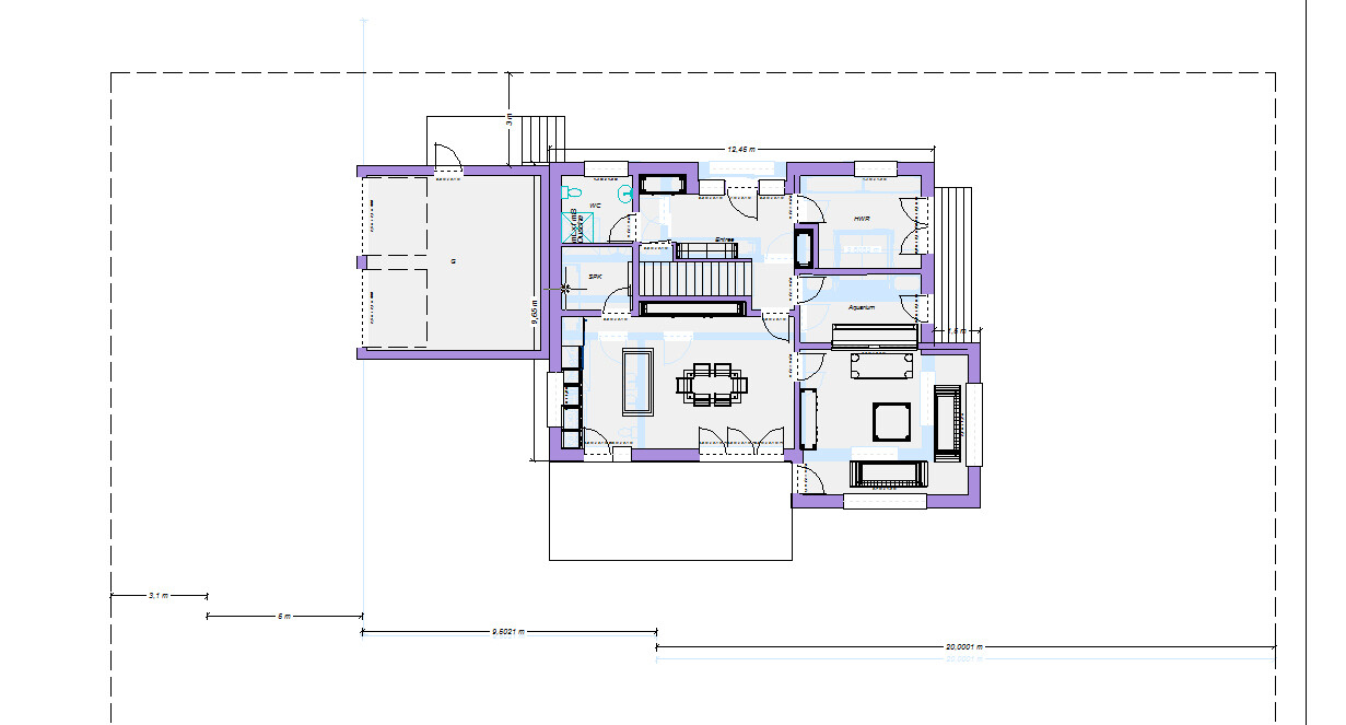Das dürfte annähernd passen. Unter 22° DN wird die Auswahl an Eindeckungsmaterialien schmaler. Wenn das Dach nicht erst aus größeren Entfernungen überhaupt sichtbar sein soll, würde ich die Perspektive nicht unterschätzen: auf zwei Vollgeschossen (Typ Stadtvilla) sehen 28° Walm etwa gleich flach aus wie 22° Sattel. Ich würde also eher 25 bis 28° DN anpeilen (und auf der Garage ggf. 2 bis 3 Grad flacher).Danke! Genau solche Hinweise finde ich sehr hilfreich.@kaho674 Dir macht planen und entwerfen genauso viel Spaß wie mir