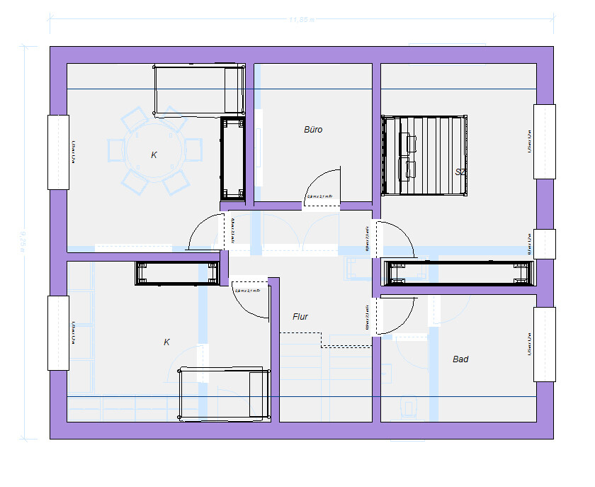 Da Ihr es ja eher "klassisch" wollt, warum die Treppe dann nicht nach planunten - also klassisch? (Treppe wieder kein Podest)Übrigens versucht man eine direkte Wand zwischen Schlafzimmer und Kinderzimmer zu vermeiden, falls möglich. Einfach mal drüber nachdenken...