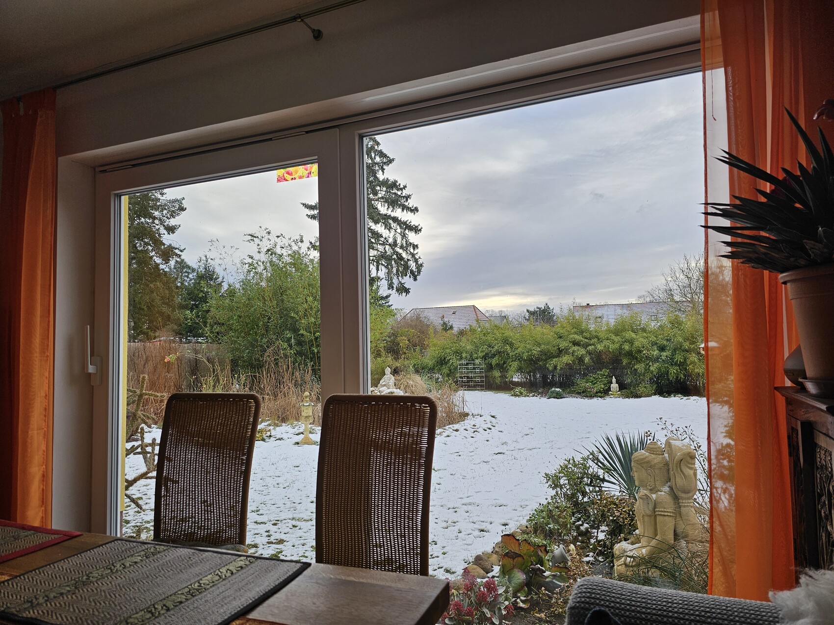 Aber das Festelement der Hebeschiebetür (die sich am Essplatz befindet) ist ein tolles großes Fenster. Und das Schiebeelement öffnen wir oft in der Übergangszeit, wenn man noch nicht draußen sitzen mag.